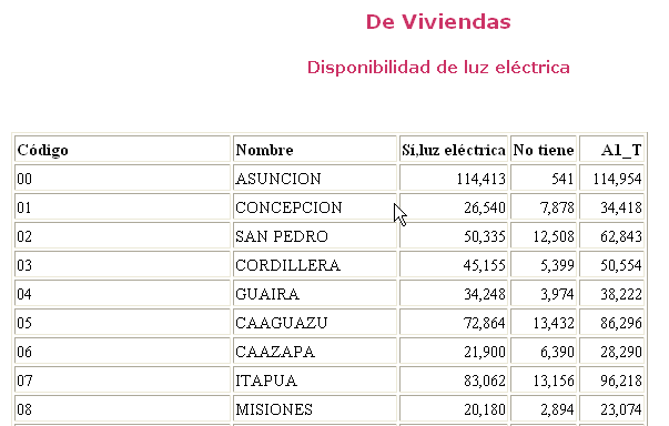 En el caso de la base de datos REDATAM para el Censo Nacional de Población y Viviendas - Paraguay 2002